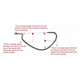 The offset geometry allows the hook point to sit perfectly flush with the lure, preventing snags in heavy cover. An optimized gap between the point and the shank ensures instant and effective penetration, while the wide-gap design maximizes the hook-up ratio and provides a secure hold during the fight.