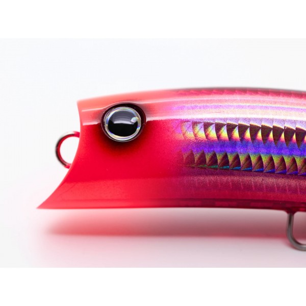 One plug, four actions. Whether shore or offshore, an angler can only cast one lure at a time. So if that lure could be manipulated in a way that would turn it into a diving pencil, a slim popper that draws bubbles, or a minnow that swims just below the surface, wouldn't it be possible to lure out a variety of lures with a single cast without having to change lures? Ultimately, we want a lure that can be used to "attract attention," "get chased," and "get a bite" with different actions in a single cast. BnD is the embodiment of that desire.