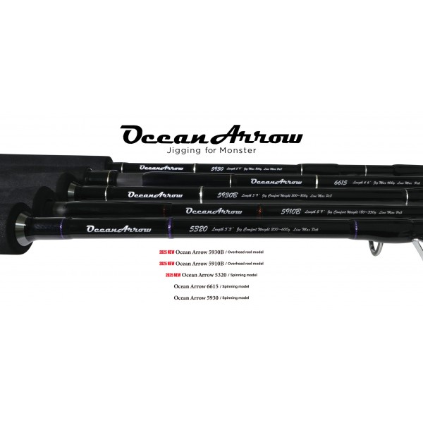 La serie Ocean Arrow está diseñada para el jigging de grandes especies en cualquier parte del mundo. En el jigging, es fundamental poder maniobrar el jig de forma eficaz para inducir la picada. Sin embargo, cuando se trata de especies de gran tamaño, no solo es necesario provocar la picada mediante el control del jig, sino también resistir su fuerza y levantar a estos monstruosos ejemplares desde las profundidades.
