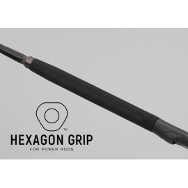 - Al igual que el agarre hexagonal, el portacarrete también tiene forma hexagonal para suprimir el tambaleo del carrete hacia los lados y transmitir la potencia sin pérdida. Esto conserva la fuerza de las manos, que es lo primero en agotarse, y aumenta la probabilidad de atrapar un pez grande.